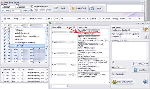 Günü Gelmiş - Raporlu ilaçlarının günü gelmiş hastalarına SMS gönderme nasıl yapılır ? Başa Dön
