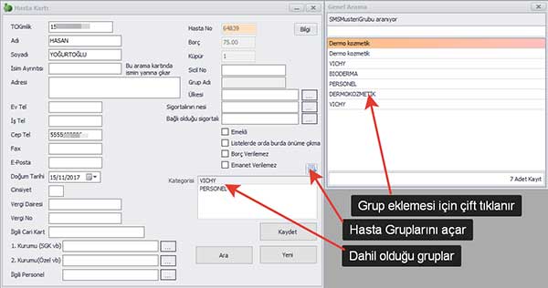 Tüm Hastalar yada Belirli tarihten itibaren işlem görmüş hastalara nasıl SMS gönderilir ? Başa Dön